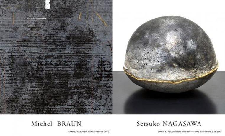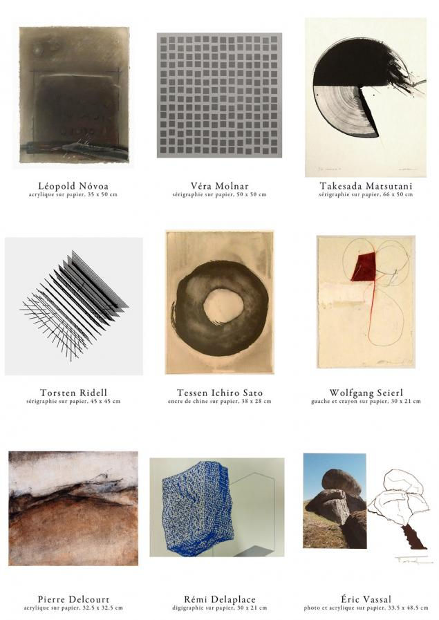 La galerie présente ses dernières œuvres magnifiques et inoubliables. La galerie Akié Arichi est heureuse de présenter les œuvres (peintures, dessins, estampes ) de Maîtres comme Hartung, Ubac, Alechinsky, etc.) et des artistes de la galerie qui y travaillent régulièrement. Hervé Duval, Thierry Le Saec, Noriko Fusé et Akané Kirimura sont d’excellents spécialistes de la gravure. Quant à Motoko Tachikawa, elle présente les œuvres collées, cousues sur la gravure en tissu. Claude Gesvret est gestuel spontané abstrait et présente les peintures sur papier. Yutaka Imai est artiste abstrait et présente des dessins calligraphique en encre de chine sur papier japonais. Alfonso Diaz Uribé est sculpteur colombien. Il présente des images qui voient dans la rivière et elles sont transparentes, floues et très colorées en gouache sur papier. Hiroyuki Moriyama cherche à rompre la géométrie des figures par l'introduction du mouvement avec les tâches qui sont là pour donner un rythme à cette partition universelle. Il s'agit ainsi d'exprimer la liberté de l'homme et non son enfermement dans un espace limité corporellement ou spatialement. Le travail sur la matière est très important. C'est lui qui va permettre l'apparition des tâches et donc du mouvement et rompre avec la rigueur de la géométrie qui symbolise la finitude. Tout est relatif et en mouvement. Il est attaché à la conception du Bouddhisme, grand véhicule. Il y a dans sa création une recherche constante de l'équilibre entre l'homme, le cercle et l'univers ; entre le blanc et le noir. Le cercle, transposition du soi, s'inscrit dans un environnement infini où il est tenu par de multiples fils, trame le soutenant.